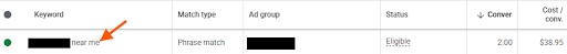 In our experience, a click on a local-specific keyword (e.g., “[Service] in Cherry Hill”) or a “near me” modified keyword is almost always cheaper and more qualified than a click on a general “Service” keyword.