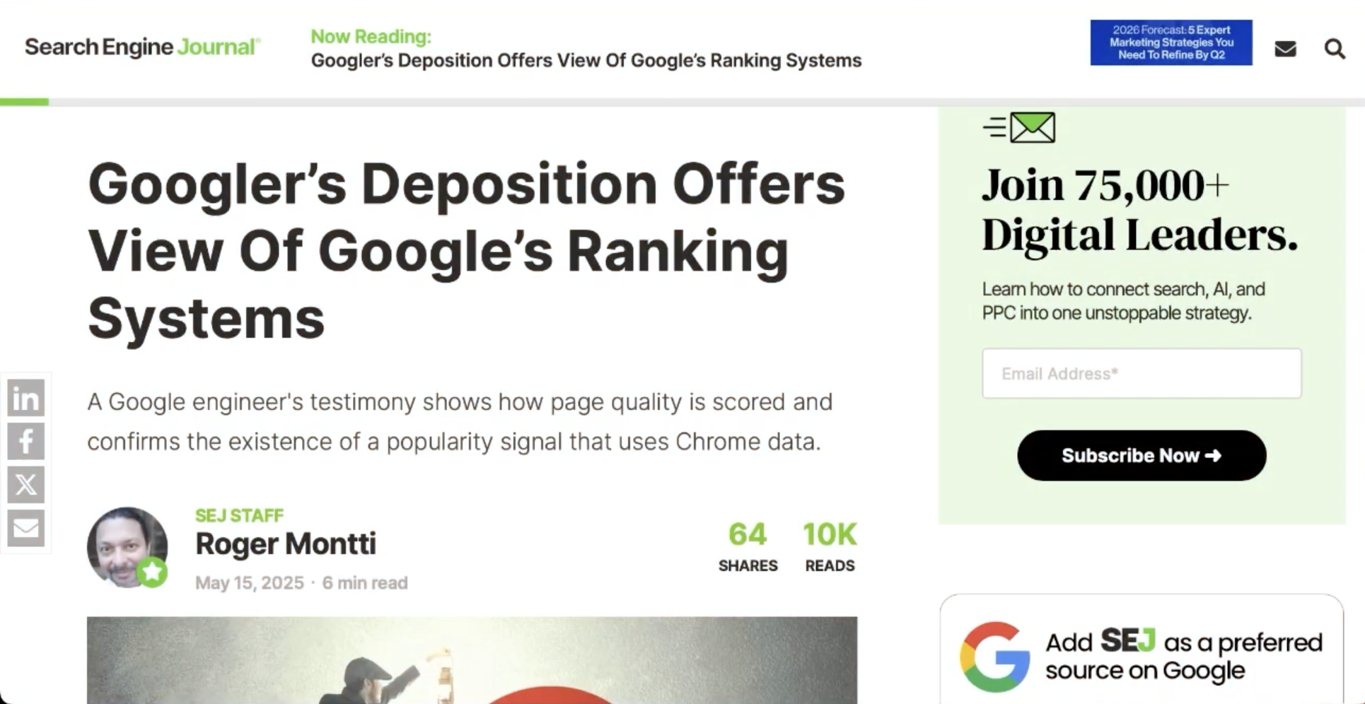 One thing we learned this year is that Google is collecting Chrome data and it seems to have some sort of popularity signal that is part of all of Google’s ranking systems: